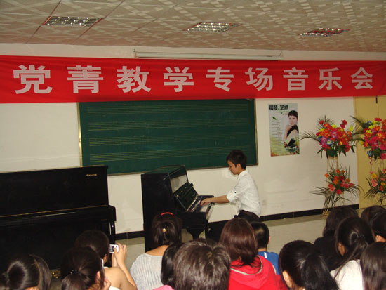 为了向全体师生汇报近年来在钢琴教学上的部分成果,为热爱钢琴艺术的学生提供一次相互交流、学习的机会,党菁老师在音乐学科的大力支持下,与她的学生精心策划,准备了这台音乐会。本次音乐会党菁老师主动走向台前,亲自担任音乐会主持,现场教授钢琴教学知识,为学生上了一场生动的钢琴知识讲座,使整场音乐会自然流畅,高潮迭起;此外,音乐会上还特别邀请回4名已经毕业并在西安音乐学院继续深造学习的优秀学生,他们带来的不仅是精彩的演奏,而且还现身说法,为在座学生讲述在艺校的学习历程和经验,并鼓励学生们继续努力。
